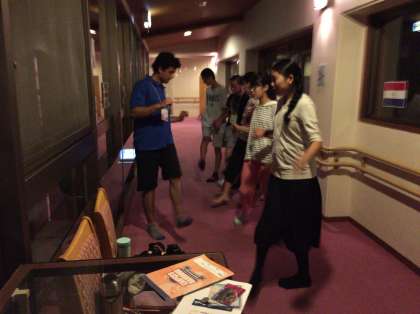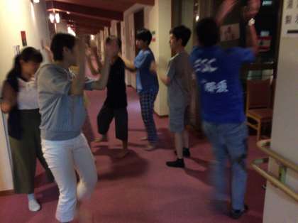 これは、各国の留学生の国際的な文化を歌や踊りを留学生のキャプテンと一緒に表現しようとするものです。とても楽しいリズムカルな表現、また深い魂に響くような音楽と踊りなど、すべて英語で実施します。夕食終わり、この時間まで英語漬けの本当に英語どっぷりの一日でした。