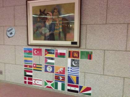 明日は曇りという予報ですが、月がきれいな夜です。参加されている留学生たちの国旗が飾られています。分かりますか?世界は広いですね。生徒たちは、まったく日本人のお兄さんお姉さんという感じで臆せず大胆に会話して