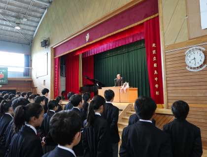 4月22日(月)には、ゴールデンウィーク前最後の朝礼がありました。私の方からは、ゴールデンウイーク期間、ケガや事故にあわないように十分注意してくださいというお話と平成の終わりと令和の初めのことを記憶にとどめておいてくださいというお話をしました。その後、卓球部団体優勝の表彰と委員会の認証式を行いました。