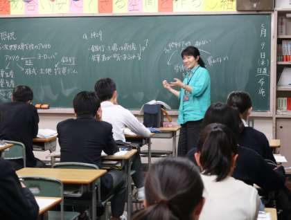 5月9日(木)は、昨日とは変わって雲の多い天候となりました。5時間目には、1年生は初めての運動会学年練習を実施していました。整列やラジオ体操など、小学校時代とは違うことを体感できたと思います。2年生は音楽、3年生は社会の授業をしていました。