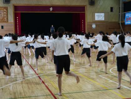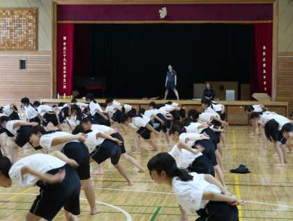 5月10日(金)午後に男子が校庭で練習している時、女子は体育館でよさこいソーランの練習をしていました。本年度初めての演技となります。運動会までの2週間で仕上げていくことになります。