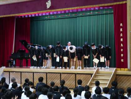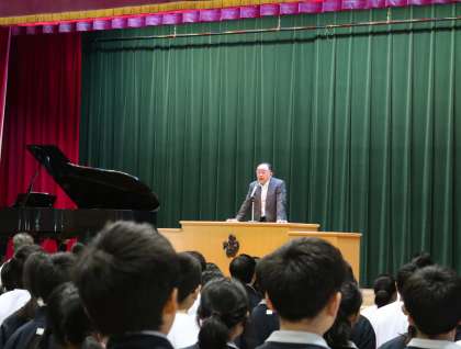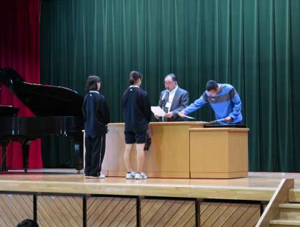 5月20日(月)には、朝礼が行われました。私の方からは、オリンピックに「参加することに意義がある」ということについてお話をしました。その後、男子バレーボールと硬式テニスの表彰を行いました。