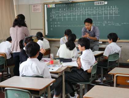 5月29日(水)は、朝まで雨が降っていましたが、昼前にはやみました。2時間目には、1年生の数学の授業を1時間観ました。自分なりに工夫したやり方で、平均を出していく授業が行われていました。