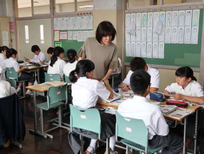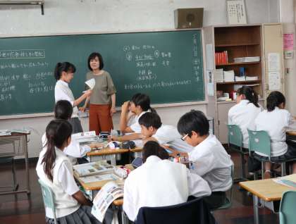 5月31日(金)の2時間目には、1年生の地理の授業を1時間観ました。世界各地の衣食住について調べ、その影響について考えたり、伝統的な様式が変化した理由について、話し合い活動などをしていました。