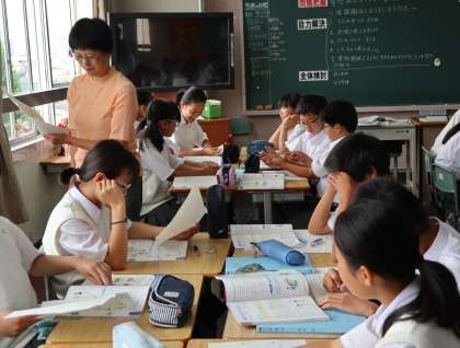 3時間目には、1年生は家庭科、2年生は国語、3年生は数学の授業をしていました。