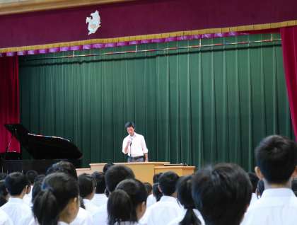 6月17日(月)は、梅雨の晴れ間で、比較的爽やかな気候となっています。朝礼では、私の方から今週返却される中間考査をしっかり復習しましょう、というお話をしました。その後、委員会などからの連絡と野球部の表彰を行いました。
