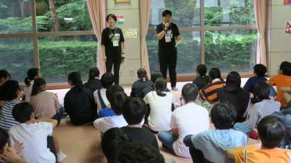 昼食後は、ロビーでお土産として持ち帰るバンダナにサインの交換をしていきました。留学生とコミュニケーションをとりながら楽しくお土産を作っている様子でした。