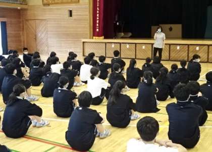 夏休みまであと数日ということで、これまでの取り組みについてのまとめの学年集会をしていました。