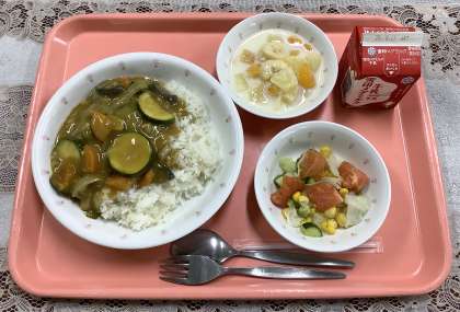 今日の給食に使用されている夏が旬の野菜は何種類でしょう。