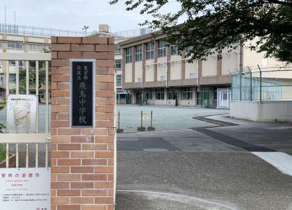 写真:上は、正門に飛鳥中学校の校名が入れられたところです。まだ、生徒たちの登校はありませんが、なんとなく学校らしくなった感じがします。