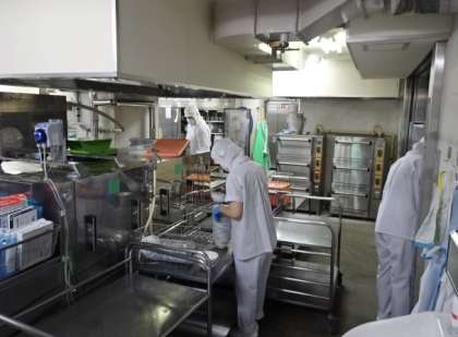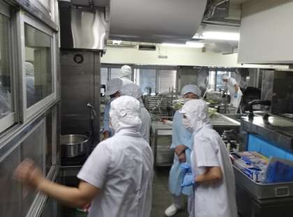 調理器具等の整理は、すでに終わっています。本日は、調理スタッフ全員が揃い、実際に調理器具( 再設置したもの )を本格的に稼働していました。