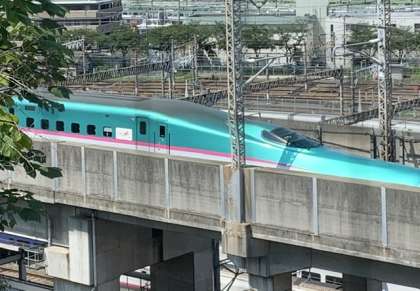 校舎の廊下体育館側から新幹線がよく見えます。鉄道好きには、いい眺めかもしれませんね。