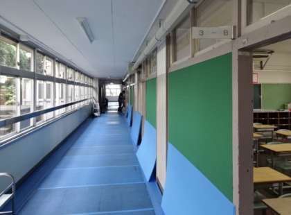 仮校舎での3年A組・B組の教室は、1階になります。