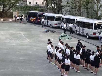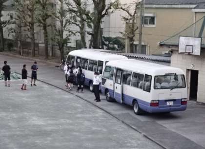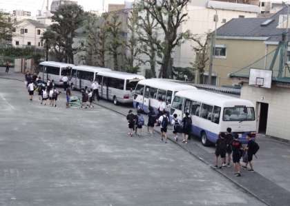 部活動が終了し、後発の通学バス( 6台 )が出発していきます。