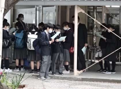 8時過ぎから新クラスの発表でしたが、毎年この日は、早く登校する生徒が多くいます。今朝も8時前から登校している生徒もいました。通学バスは、通常の時間どおりでした。