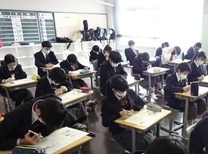 2年生の教室では、来週実施される「 北区基礎・基本定着度調査 」に向けて、練習問題等に取り組んでいました。