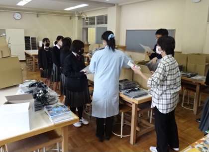 本日、2・3年生を対象に「 学習者用端末 」一式を貸与しました。