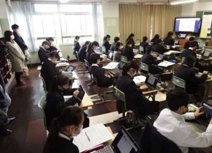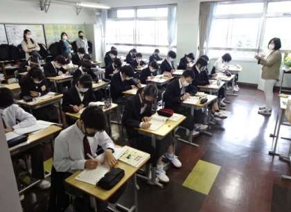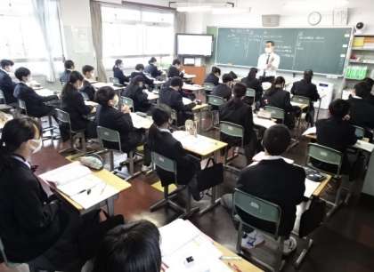 写真は、上から順に1年A組(数学)・B組(英語)・C組(社会)の授業の様子です。