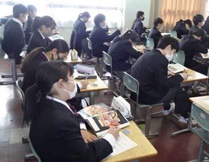 1年生の道徳は、3クラスとも「 夢を諦めない ー「ねぶた師」北村麻子 」を取り上げています。