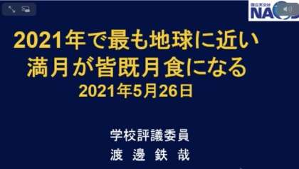渡邊様からは、26日(水)夕の「 皆既月食 」を飛鳥中のみなさんにも、是非、観望して戴ければと、「 皆既月食 」についての解説動画等が掲載されているURLをご紹介いただきました。