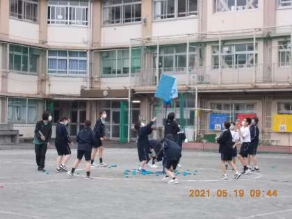 小雨も上がり、全校での短距離走、玉入れと競技が始まりました。