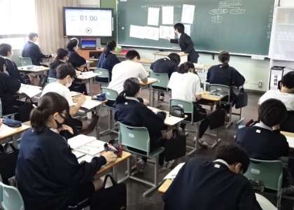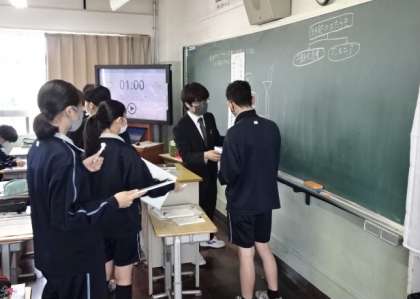 昨日同様、2年B組の生徒たちも、実習生の説明にしっかりと耳を傾けていました。