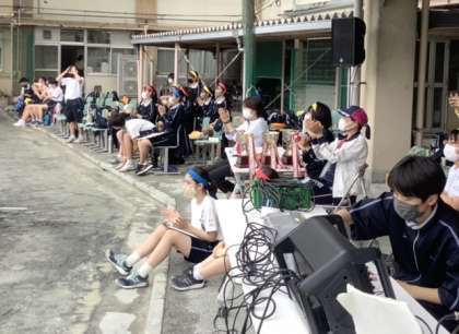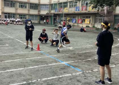 1年生全員リレーの様子つづき、応援も係生徒も全力です。
