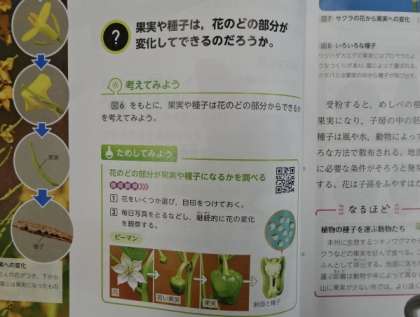 担当の先生が、黒板に「 花のはたらき 」を、花は咲いたあと、どのように変化していくのかまとめています。