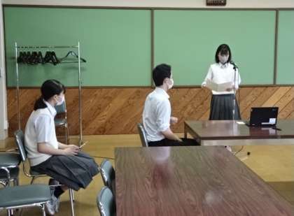 2名の生徒会役員から、運動会を振り返り、当日の様子や成果、そして、今後の学校生活に向けてと様々な内容が伝えられていました。