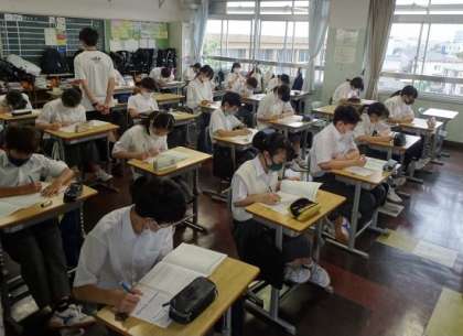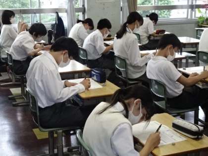 写真は、1年A組の様子ですが、本日、各学年・各クラスで「Q−U」調査が行われていました。