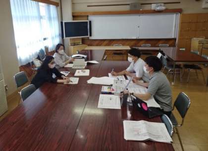 写真は、職員室のレイアウトや電源等の設置位置を踏まえ、購入する物品の最終確認をしているところです。先生方の机の色や椅子の仕様なども確認していました。