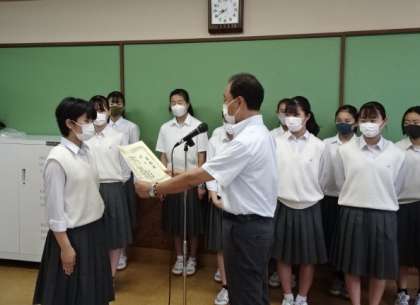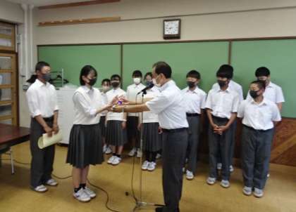 本日の全校朝礼( 放送 )では、表彰を行いました。