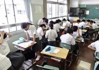 担当の山岸先生がいらっしゃるので、学級活動をされているのかと思い、教室に入ると、「 漢字クロスワードパズル 」に取り組んでいました。