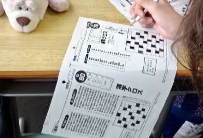難しい漢字( 熟語 )を相談しながら、パズルのマスを埋めていました。