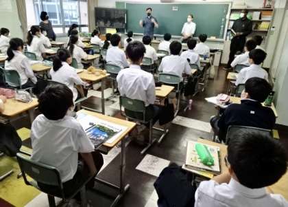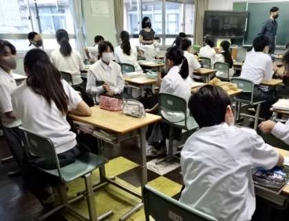 写真:下は、周りの人とコメントの内容について、日本語でシェアしているところです。ALTの先生のコメントは、もちろんすべて英語です。