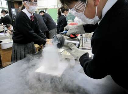 実験に使用する道具( 写真:中・下=液体窒素 )等は、お茶の水女子大学より提供していただいています。