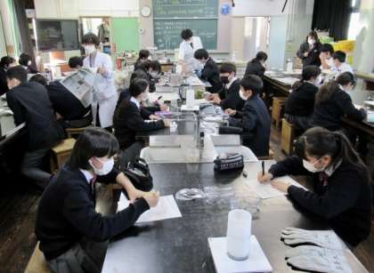 さまざまな実験を終え、授業の後半では実験を通して分かったことを共有し、個々にプリントをまとめていました。(写真:上)