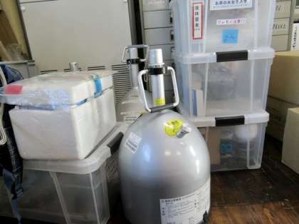 お茶大の先生に、液体窒素が入っている容器を見ながら、「 この中に○○が入っていたら美味しそうですね。」に「 よく言われます。」と。大人の発想は同じなのだなぁと反省しました。(写真:中)