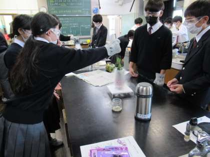 昨日お伝えした、1年A組と同様の実験が行われています。