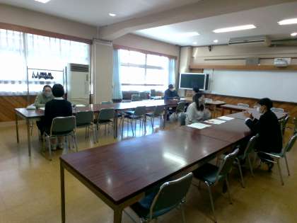 会議室の中にはALTの先生が3人いて、1人ずつインタビュー試験を受けています。