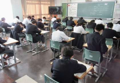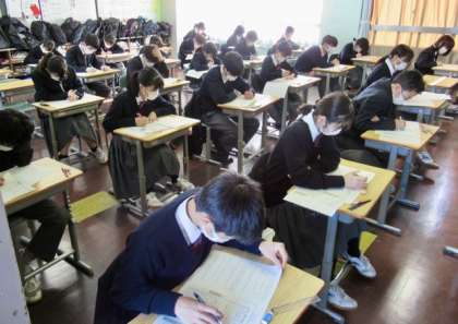 写真は、上から順に1年生・2年生・3年生 1時間目:数学の試験中の様子です。