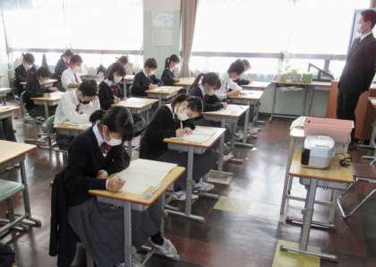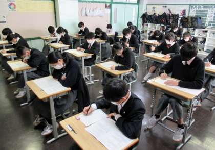 写真は、上から順に3年生・2年生・1年生 1時間目 英語の試験中の様子です。