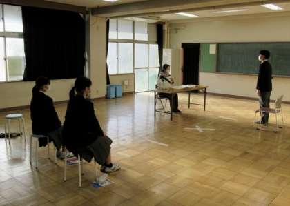 3年生は、各教室と特別教室に分かれて「 面接練習 」を行っています。