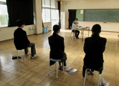 特活室では、3名の生徒が少し緊張した面持ちで「 面接練習 」に臨んでいました。