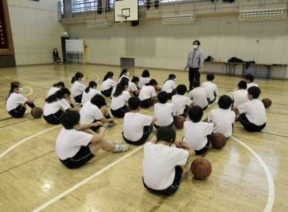 担当の先生から、バスケットボールの練習を始めるにあたって、いくつか注意点が伝えられています。