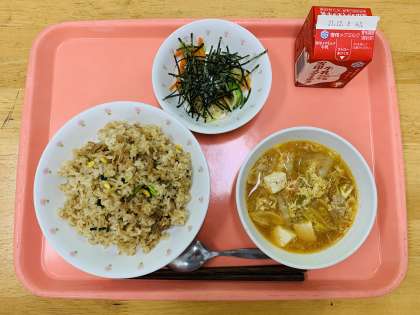今日は給食室で肉味噌と野菜を混ぜ込みました。