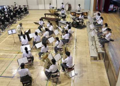 今年の学芸発表会(10月23日実施)では、感染対策のため、クラス合唱の発表を中心に実施し、吹奏楽部の演奏は行いませんでした。