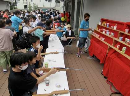 飛鳥中学校同窓会の皆様がご準備いただいた『 射的 』は大盛況です。