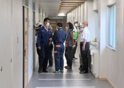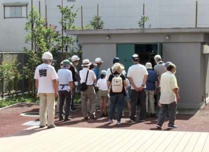 その後、2つのグループに分かれ、校舎内外の備蓄倉庫の場所や備蓄されているものを確認されていました。