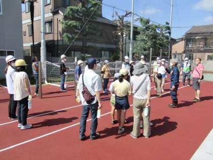また、校庭に設置されている「 マンホールトイレ 」や「 かまどベンチ 」の場所を確認されていました。